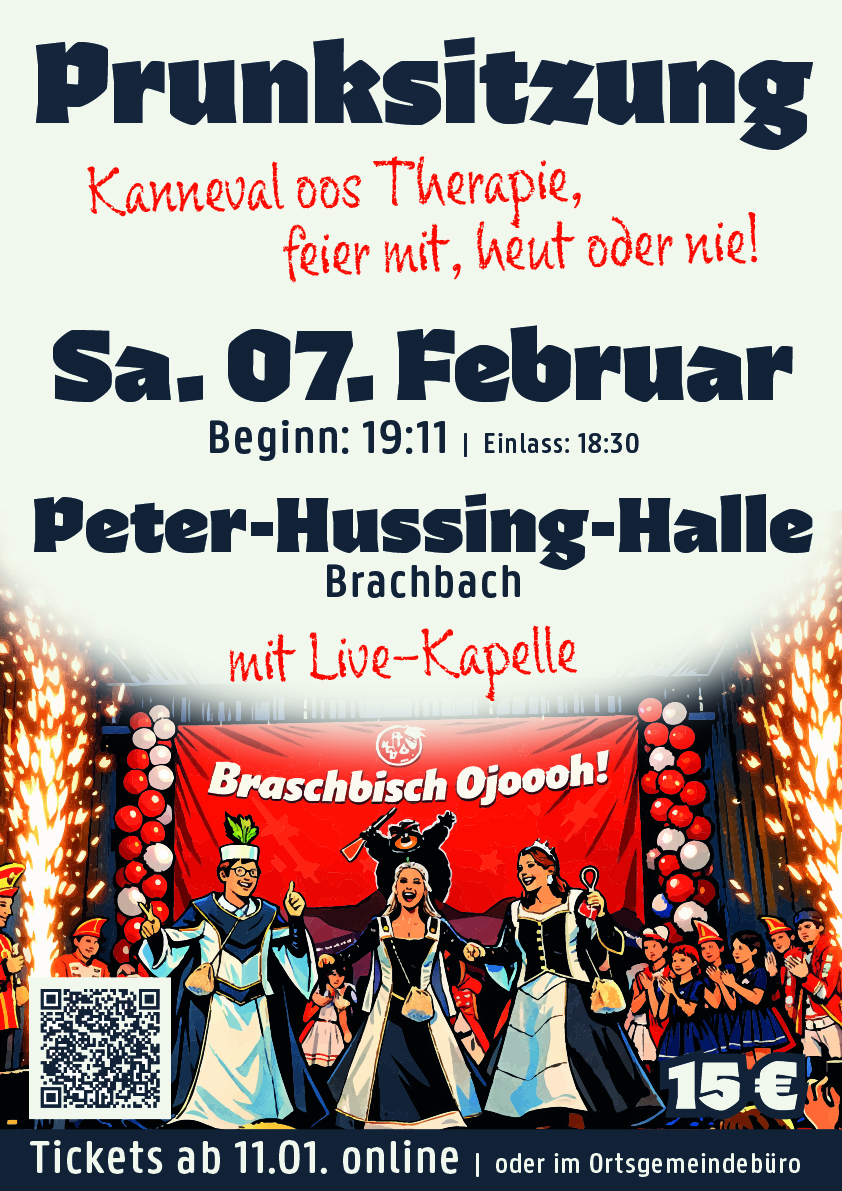 Unser Dreigestirn hat der Session das Motto "Kanneval oos Therapie - feiert mit, heut' oder nie!" gegeben. Was bleibt uns also übrig, als dieser ja nunmal offiziell verschriebenen Therapieanweisung Folge zu leisten?! Dazu haben wir in Braschbisch und Umgebung in den nächsten Tagen und Wochen auch wieder reichlich Gelegenheit. Die Erzquell-Brauerei wird's freuen...